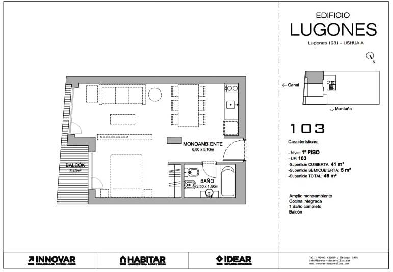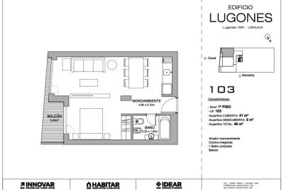 Este excelente departamento de 40.9m² cubiertos y 5.40m² de balcón, contará con todo el mobiliario de cocina, horno y anafe eléctrico, baño principal completo, calefacción por losa radiante y cortinas en todos los ambientes.