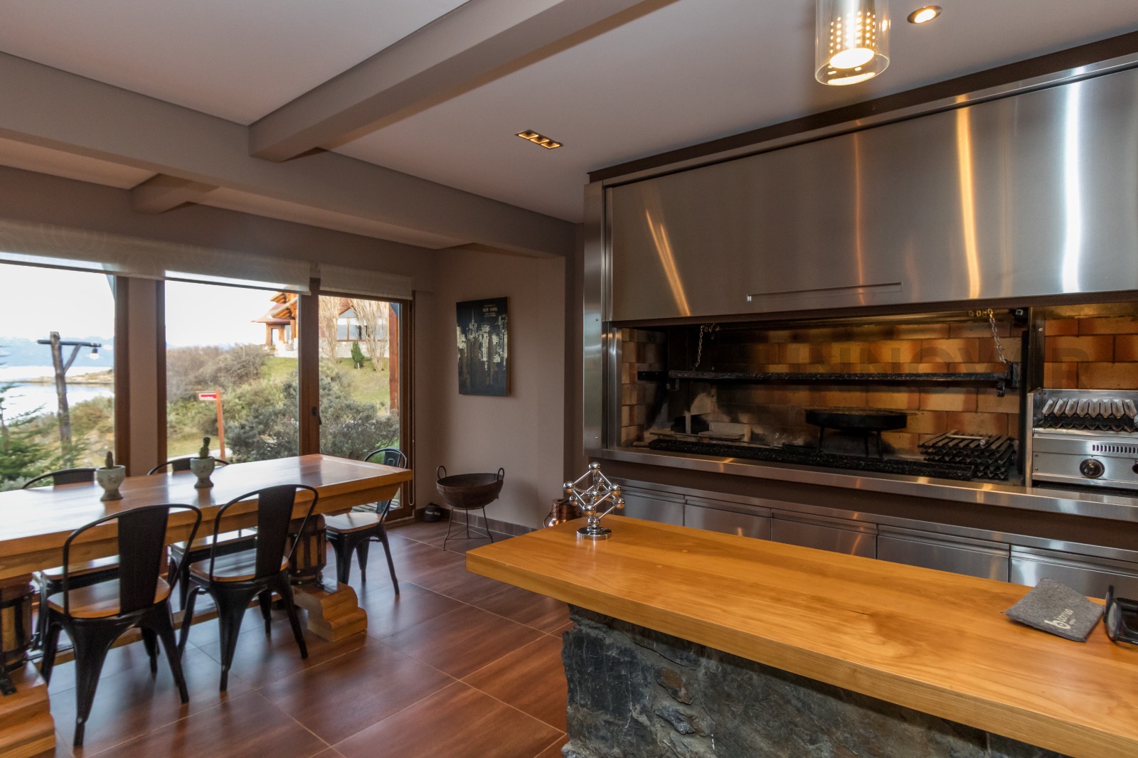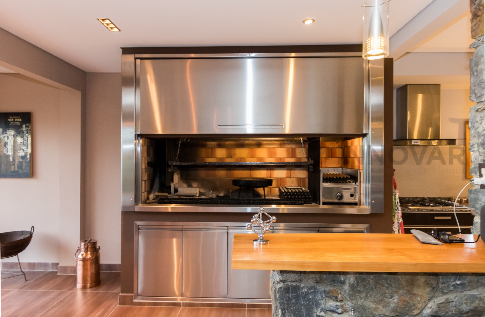 • Zona de Quincho: Increíble parrilla interna de acero inoxidable con barra de piedra, perfecta para reuniones sociales sin importar el clima.