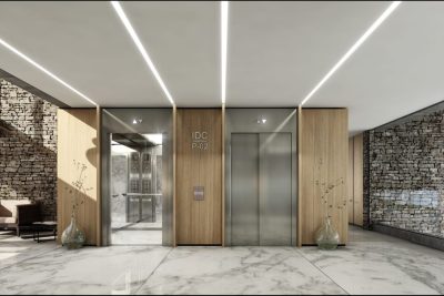 Espacios comunes: cemento alisado y porcellanato.